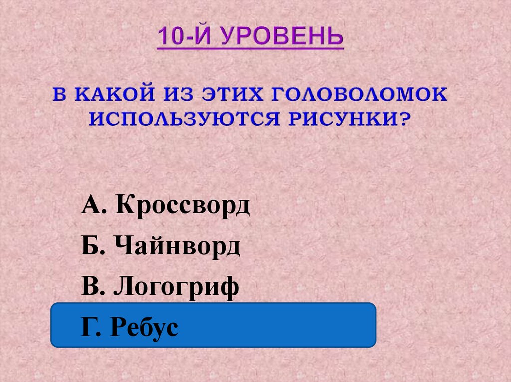 А. КроссвордБ. Чайнворд