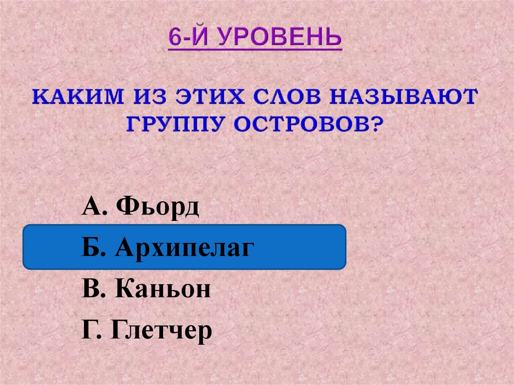 А. ФьордБ. Архипелаг