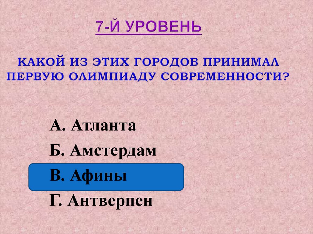 А. АтлантаБ. Амстердам