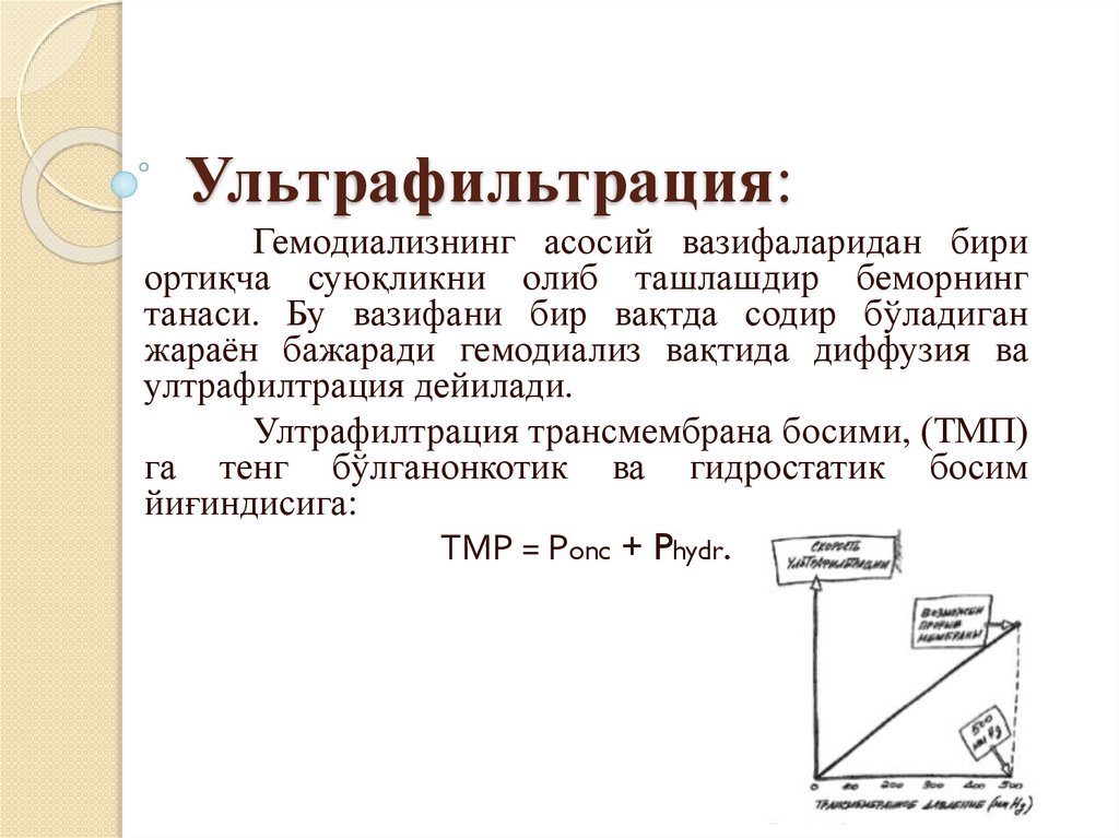 Ультрафильтрация:Гемодиализнинг асосий вазифаларидан бири