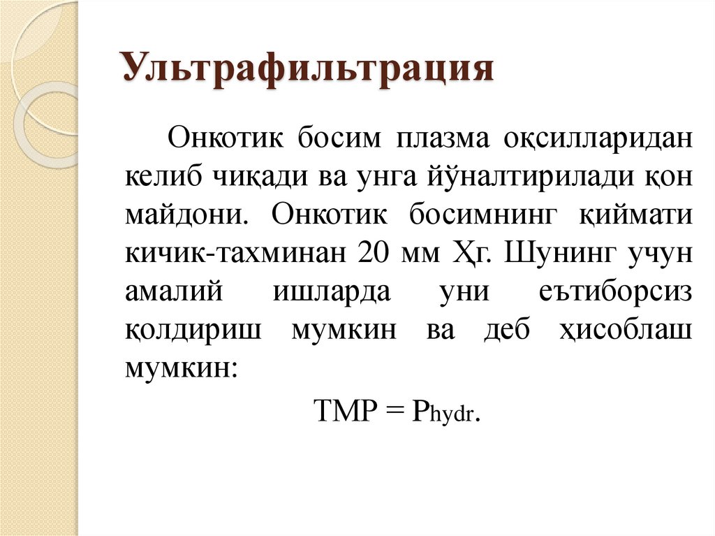 УльтрафильтрацияОнкотик босим плазма оқсилларидан