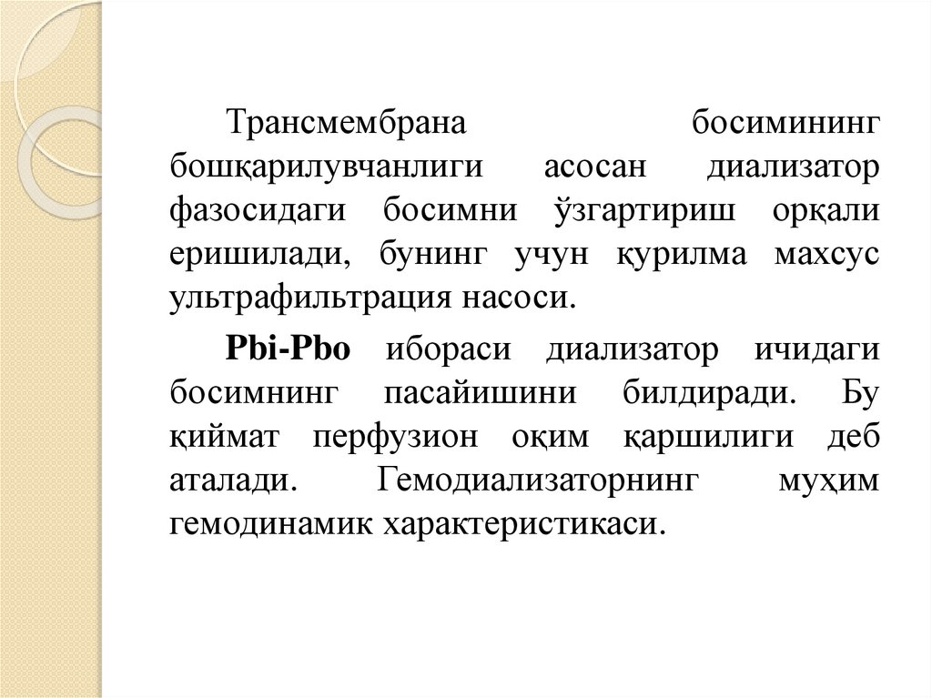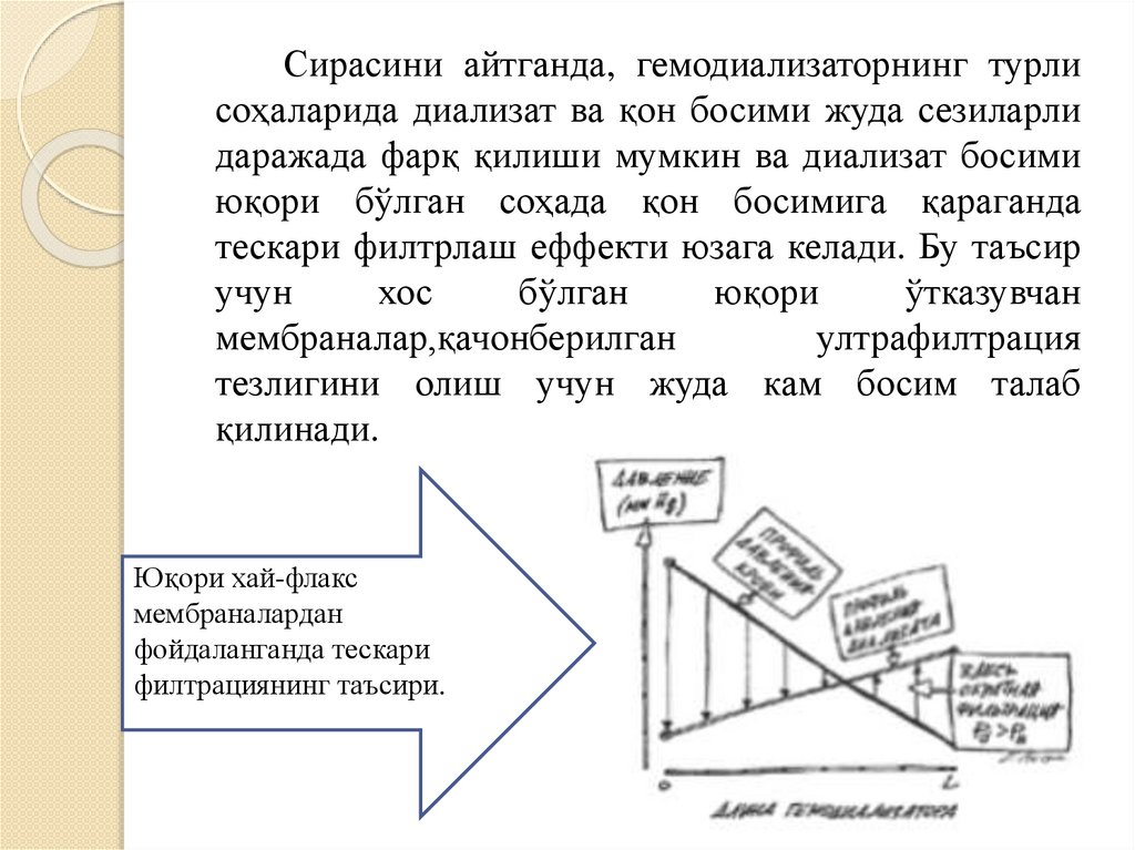 даражада фарқ қилиши мумкин ва диализат босими