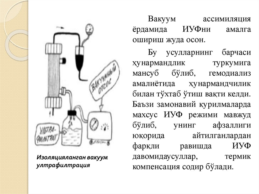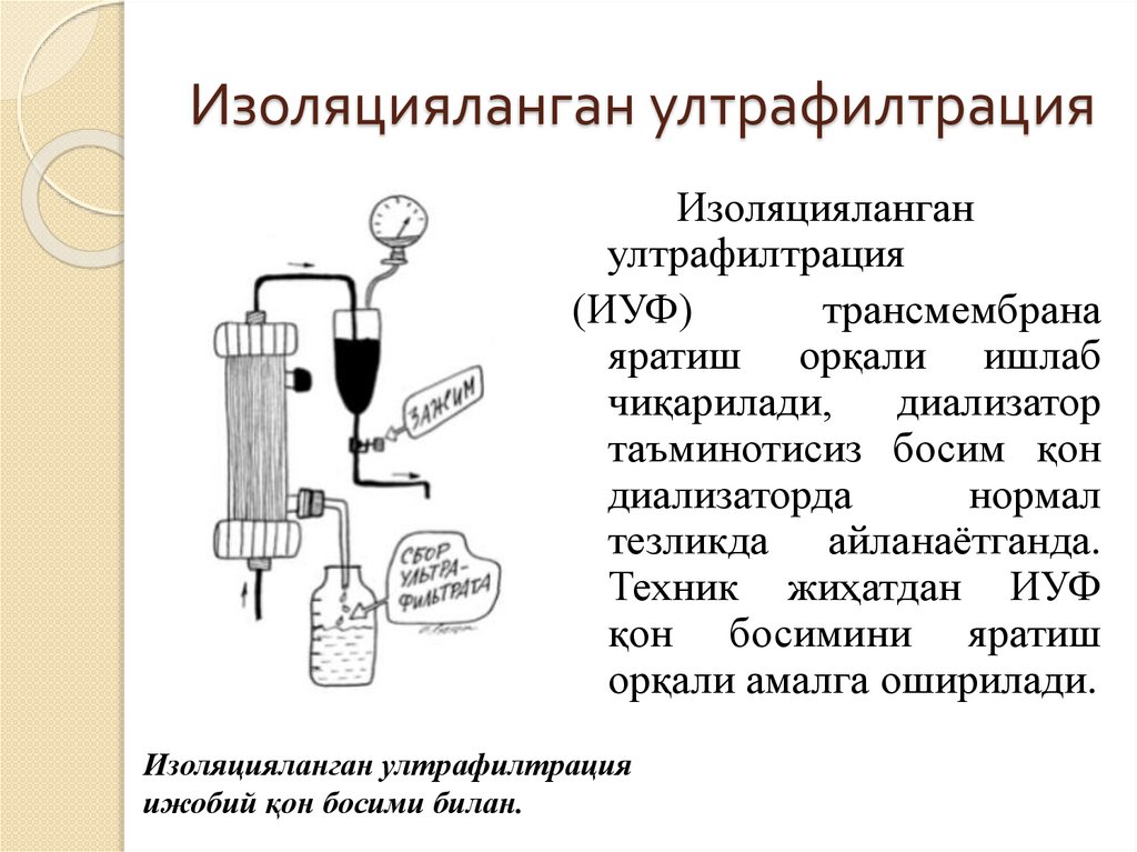 мажбурий усулидир.Иуфнинг гемодиализ ултрафилтрациясига