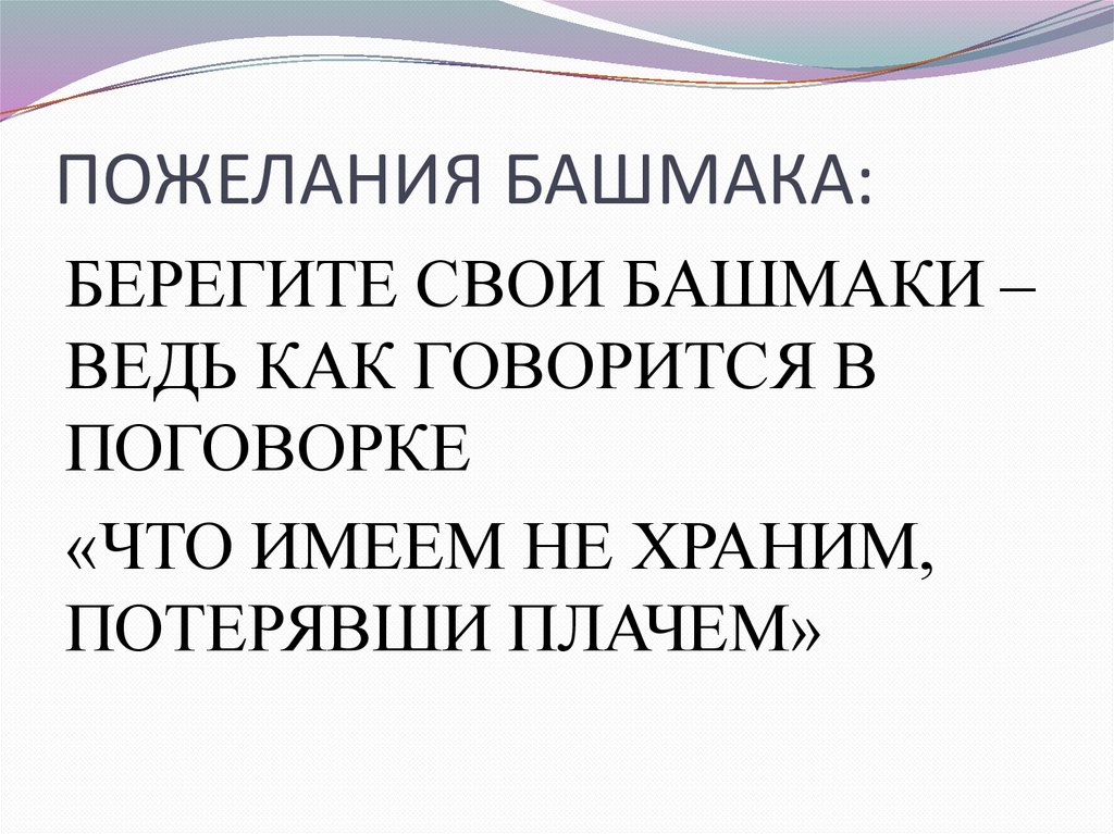 ПОЖЕЛАНИЯ БАШМАКА:БЕРЕГИТЕ СВОИ БАШМАКИ –