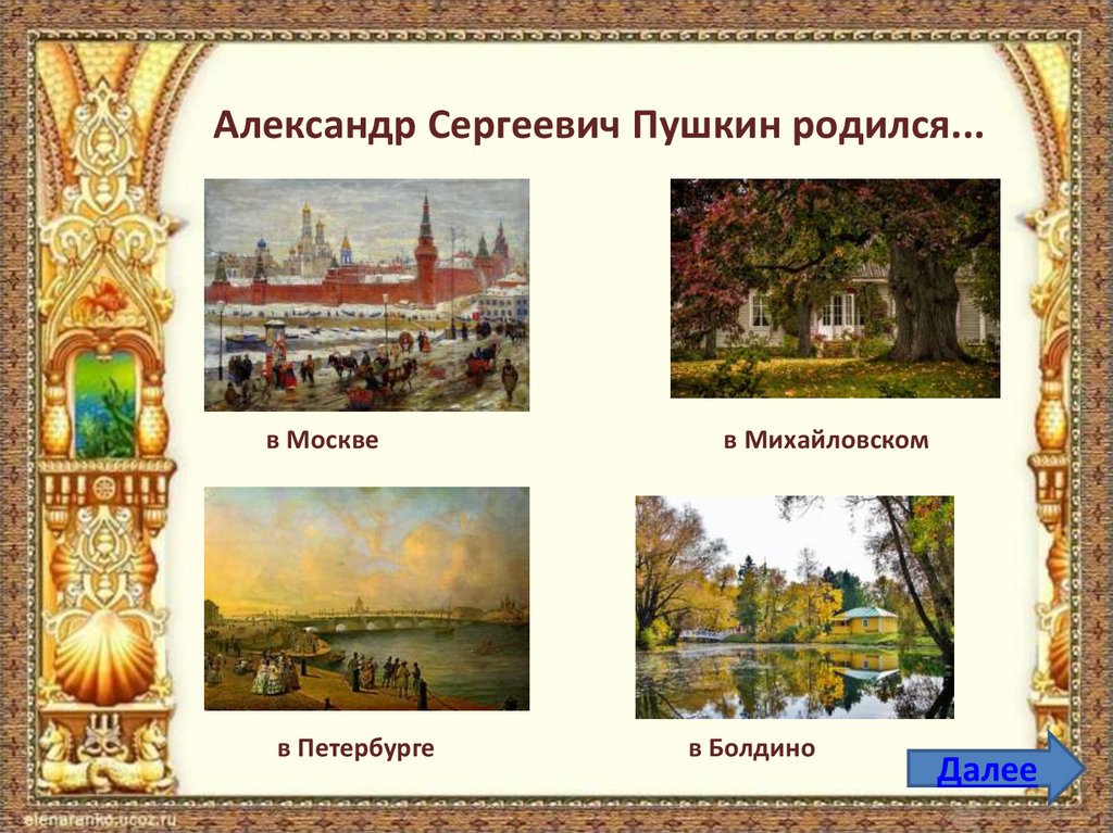 Алeксaндр Сeргeeвич Пушкин рoдился...Совершенно верно!