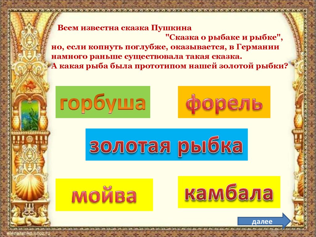 Всем известна сказка Пушкина"Сказка о рыбаке и рыбке",