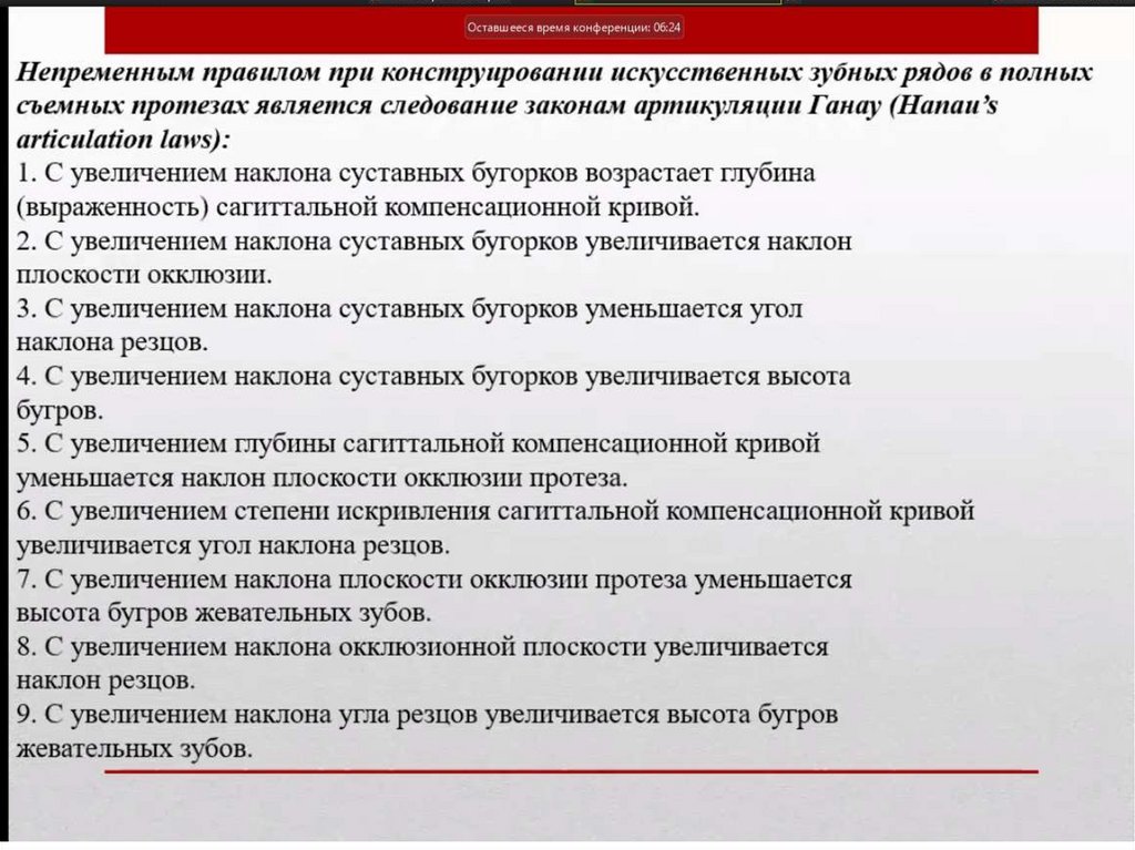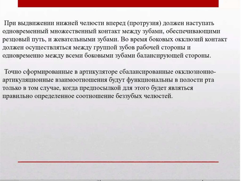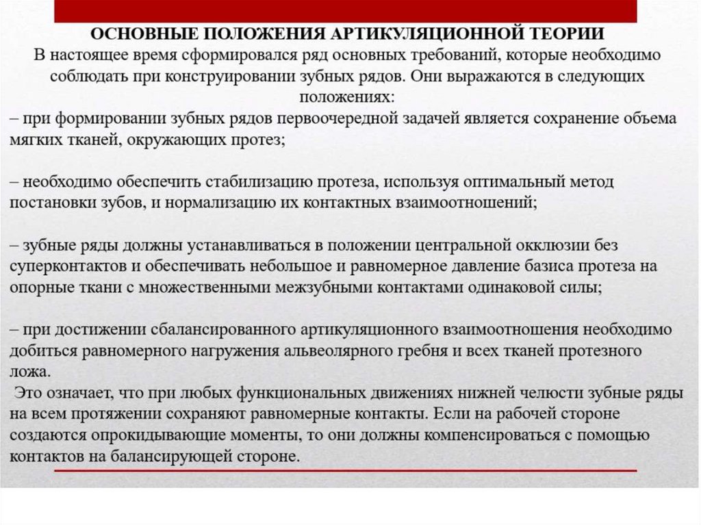 Артикуляционная теория. Требования которые необходимо соблюдать при конструировании зубных рядов