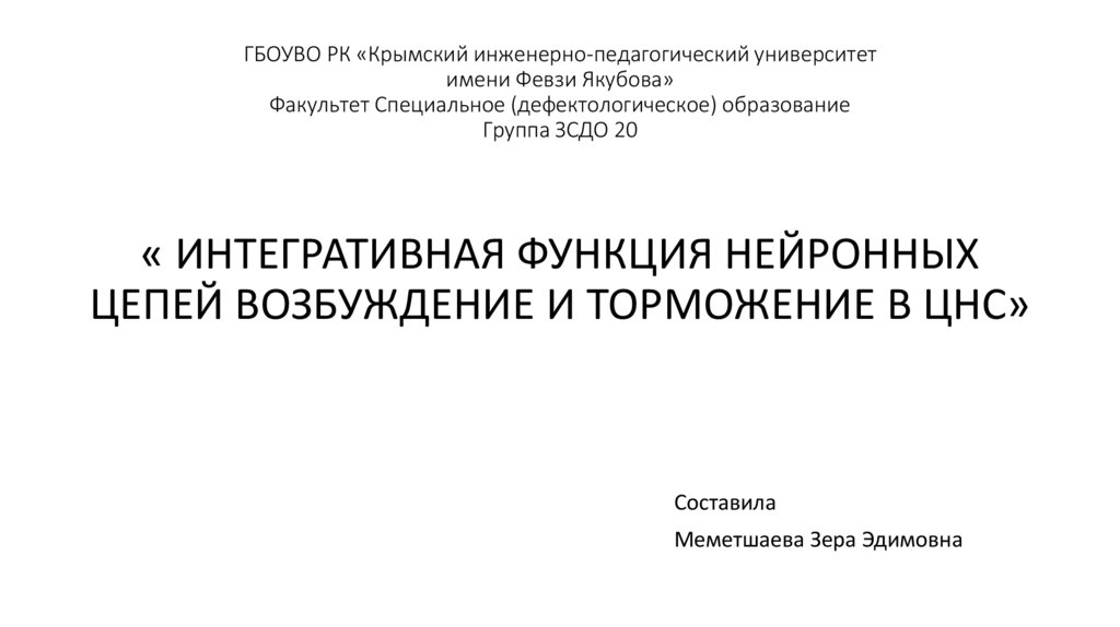 « ИНТЕГРАТИВНАЯ ФУНКЦИЯ НЕЙРОННЫХ