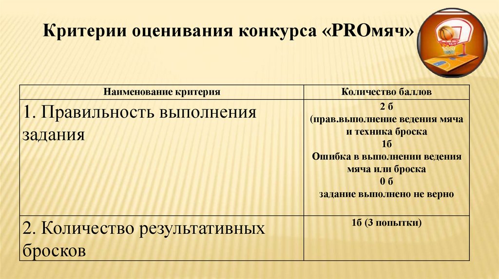 Критерии оценивания конкурса «PROмяч»Наименование критерия