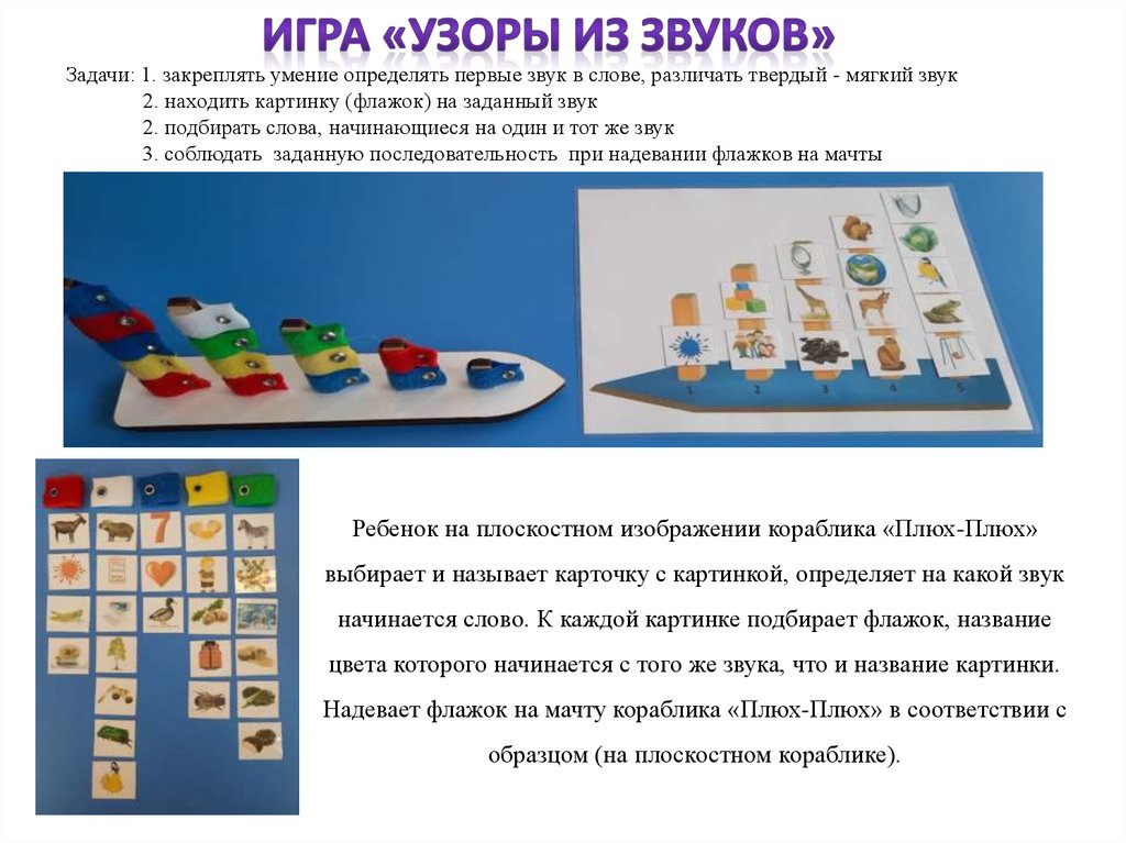 Задачи: 1. закреплять умение определять первые звук в слове, различать твердый - мягкий звук2. находить картинку (флажок) на заданный звук