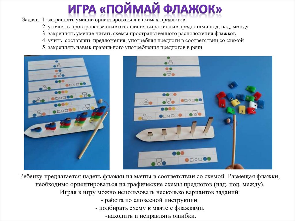 4. учить составлять предложения, употребляя предлоги в соответствии со схемой