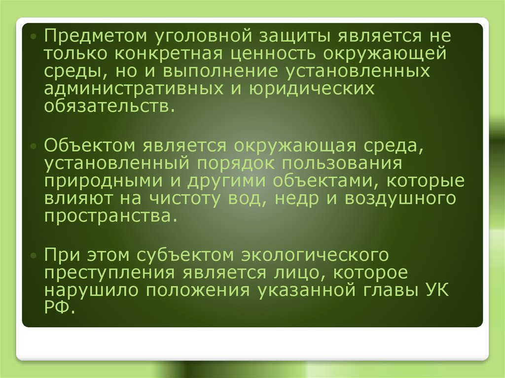 Предметом уголовной защиты является нетолько конкретная ценность окружающей