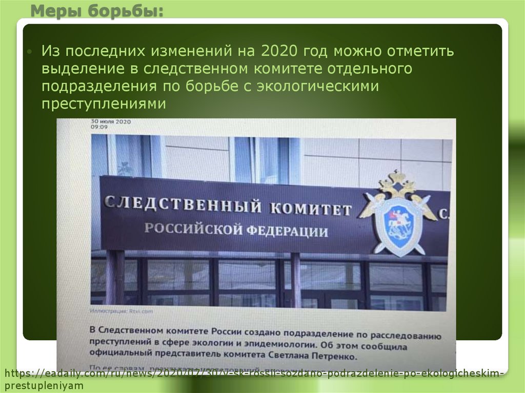 https://eadaily.com/ru/news/2020/07/30/v-sk-rossii-sozdano-podrazdelenie-po-ekologicheskimprestupleniyam