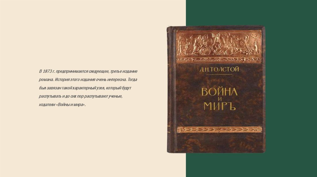 В 1873 г. предпринимается следующее, третье изданиеромана. История этого издания очень интересна. Тогда