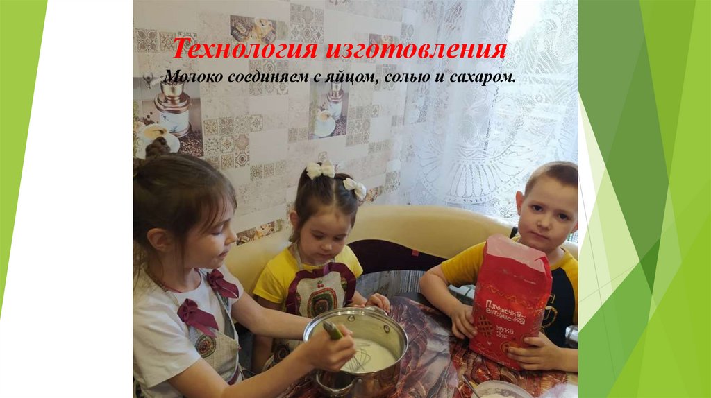 Технология изготовленияМолоко соединяем с яйцом, солью и сахаром.