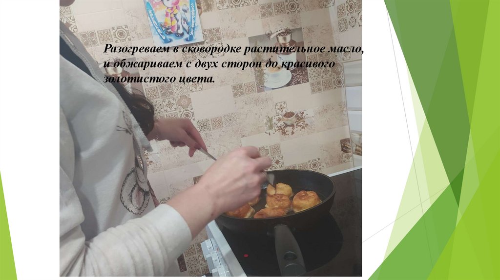 Разогреваем в сковородке растительное масло,и обжариваем с двух сторон до красивого