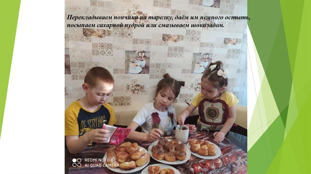 Перекладываем пончики на тарелку, даём им немного остыть,посыпаем сахарной пудрой или смазываем шоколадом.
