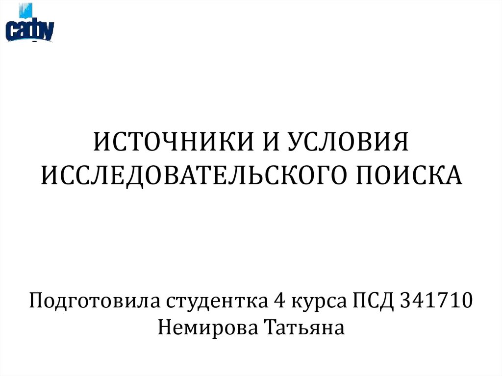 ИСТОЧНИКИ И УСЛОВИЯИССЛЕДОВАТЕЛЬСКОГО ПОИСКА