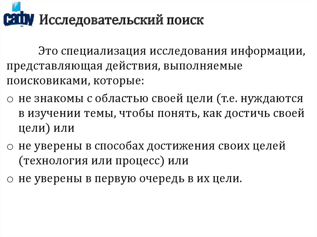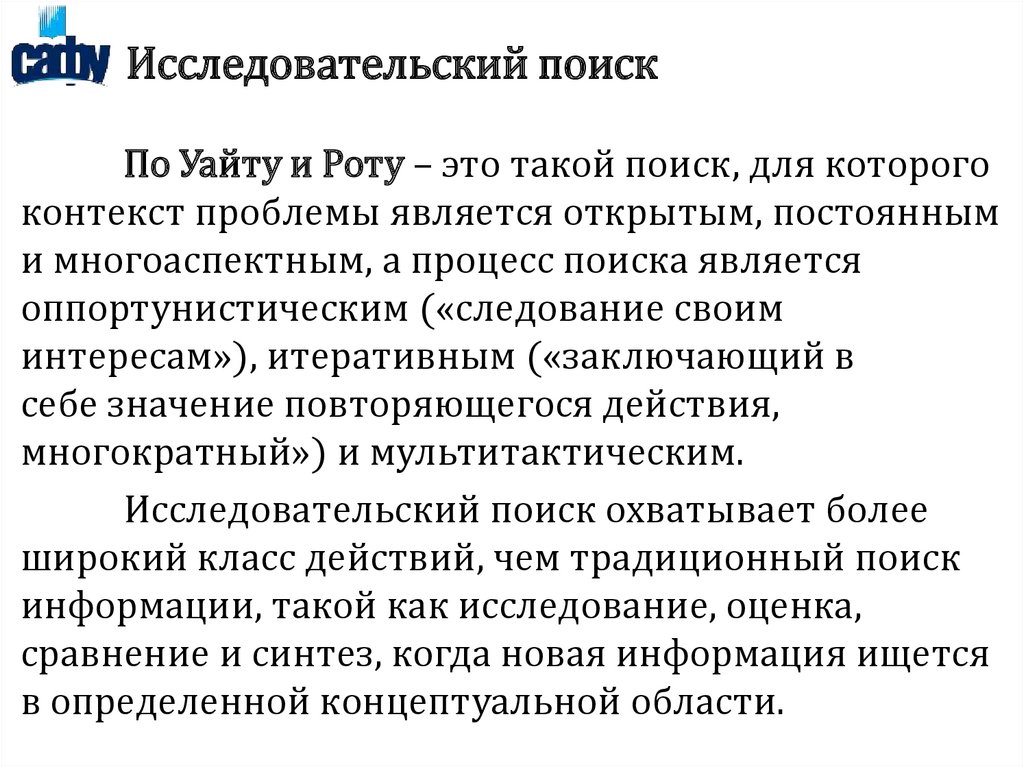 Исследовательский поискПо Уайту и Роту – это такой поиск, для которого