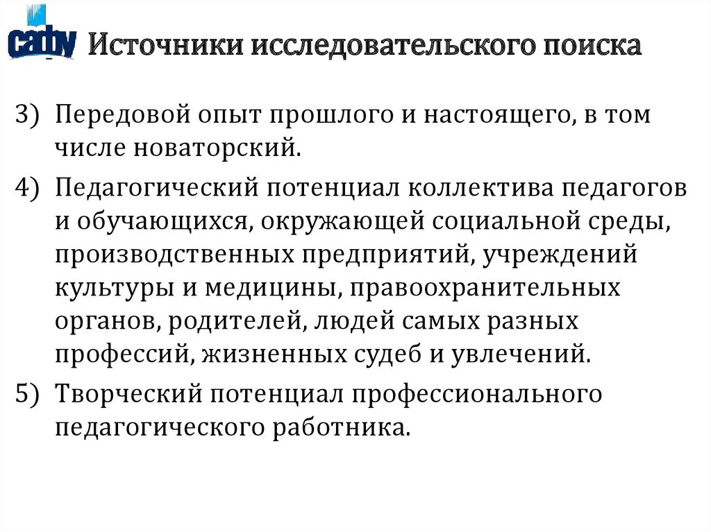 Источники исследовательского поиска3) Передовой опыт прошлого и настоящего, в том