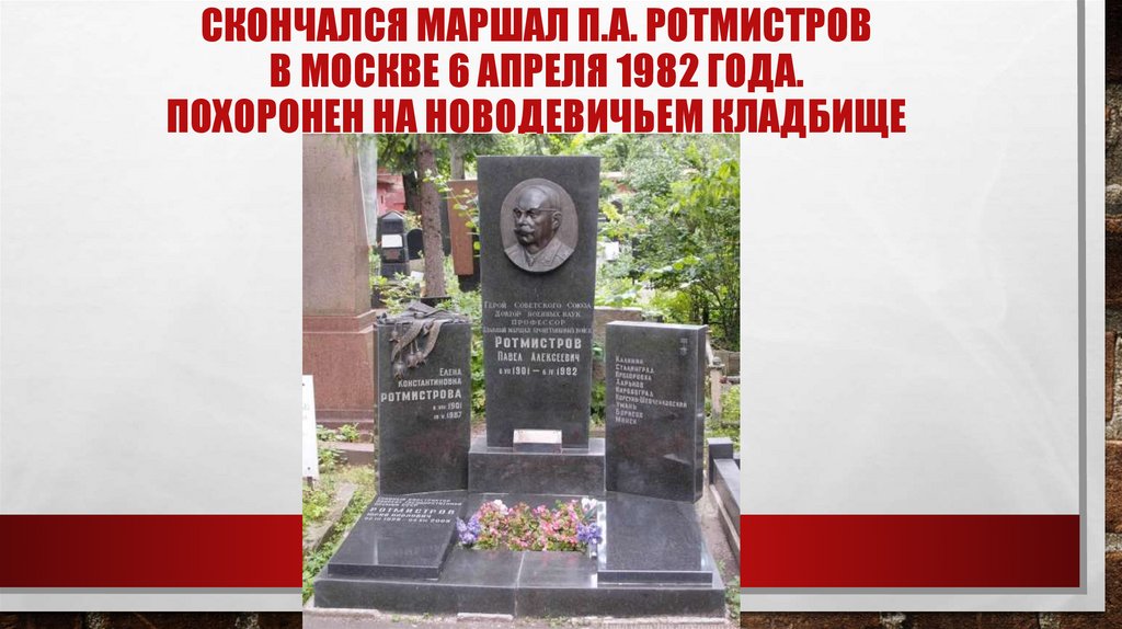 СКОНЧАЛСЯ МАРШАЛ П.А. РОТМИСТРОВВ МОСКВЕ 6 АПРЕЛЯ 1982 ГОДА.
