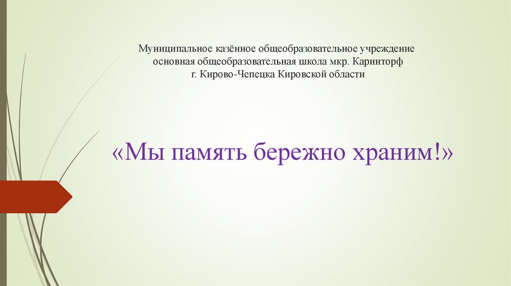 Мы память бережно храним. МКОУ ООШ м-на Каринторф г. Кирово-Чепецка Кировской области