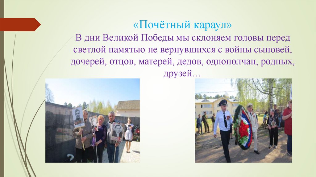 «Почётный караул»В дни Великой Победы мы склоняем головы перед