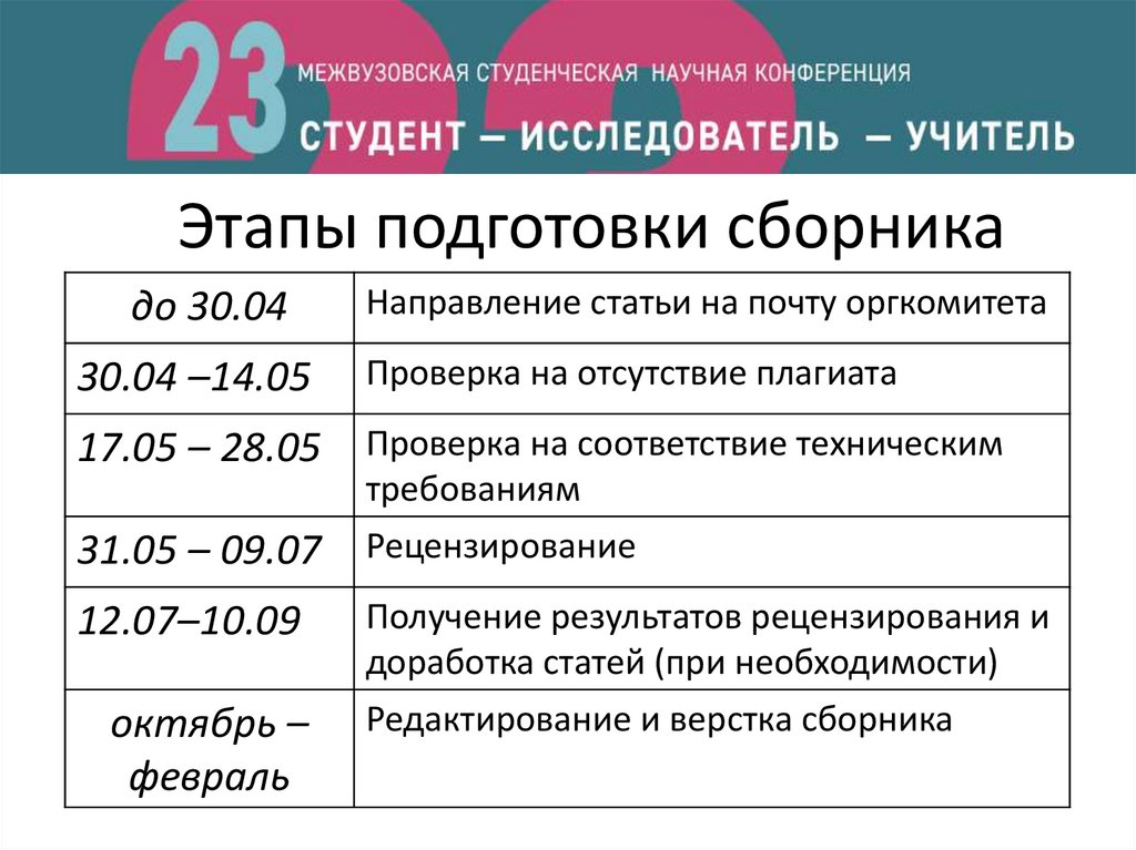 Этапы подготовки сборникадо 30.04