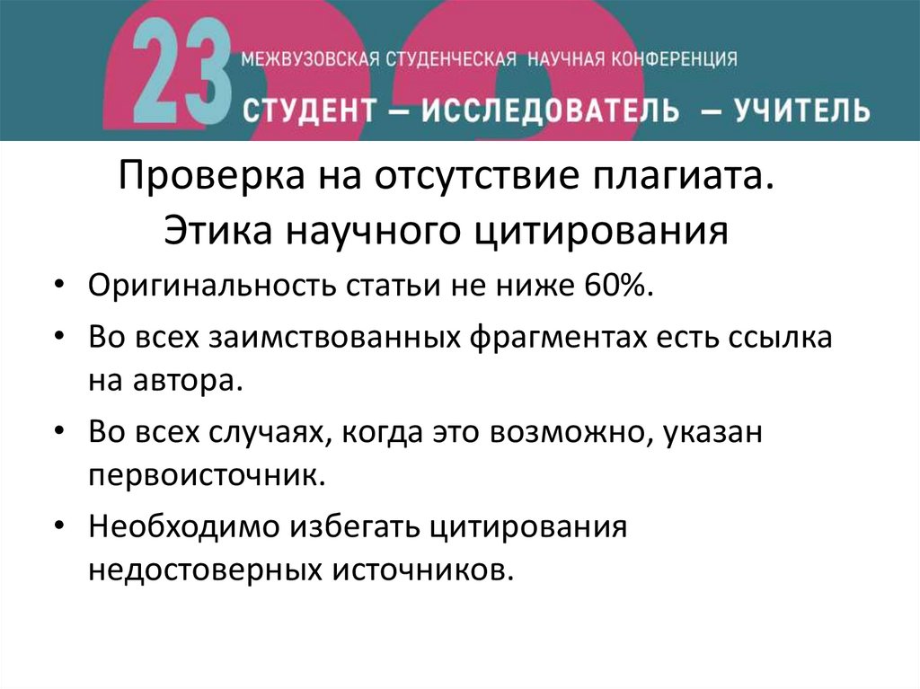 Проверка на отсутствие плагиата.Этика научного цитирования