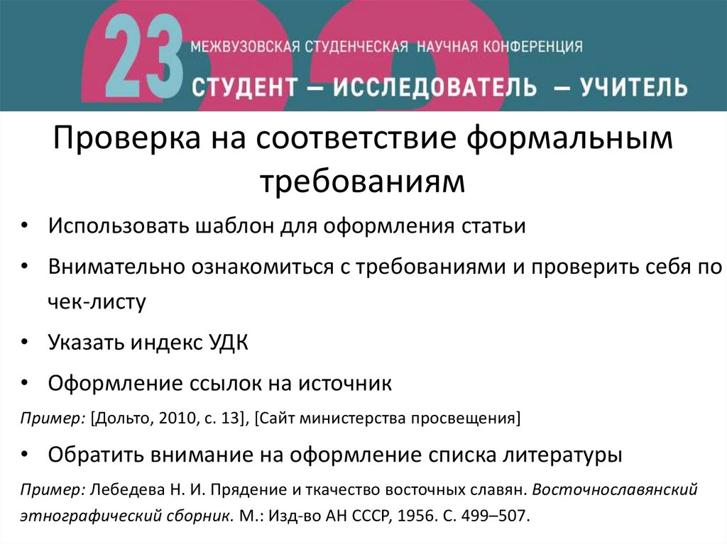 • Использовать шаблон для оформления статьи