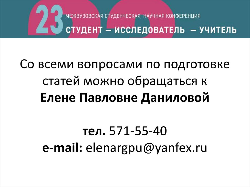 Со всеми вопросами по подготовкестатей можно обращаться к