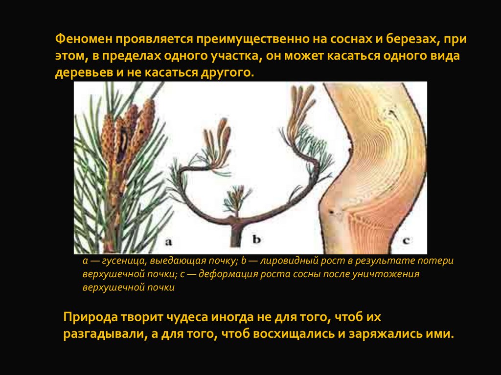верхушечной почки; с — деформация роста сосны после уничтожения