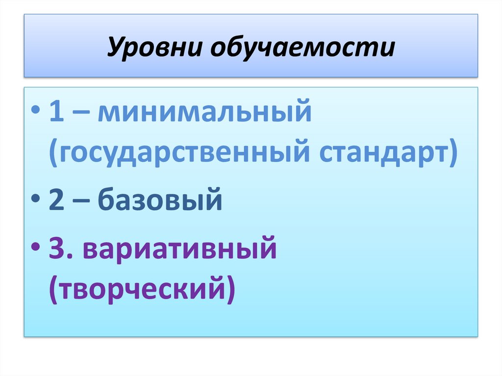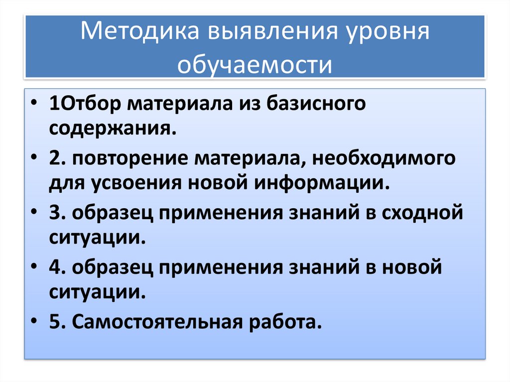 Разноуровневое обучение. Методика выявления уровня обучаемости