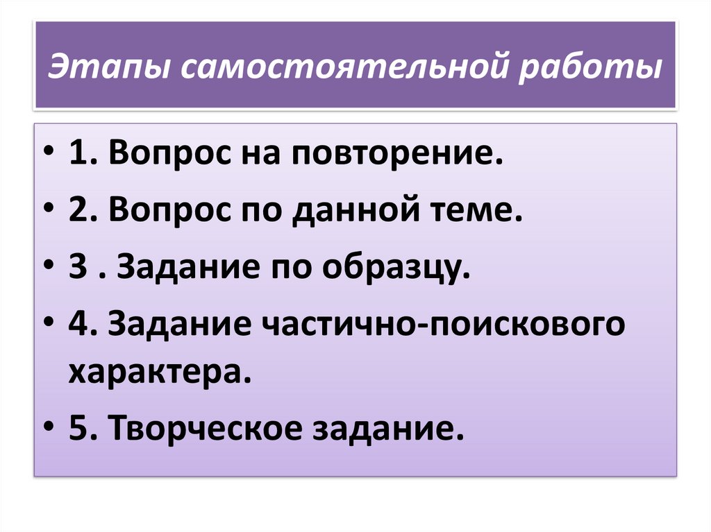 Этапы самостоятельной работы1. Вопрос на повторение.