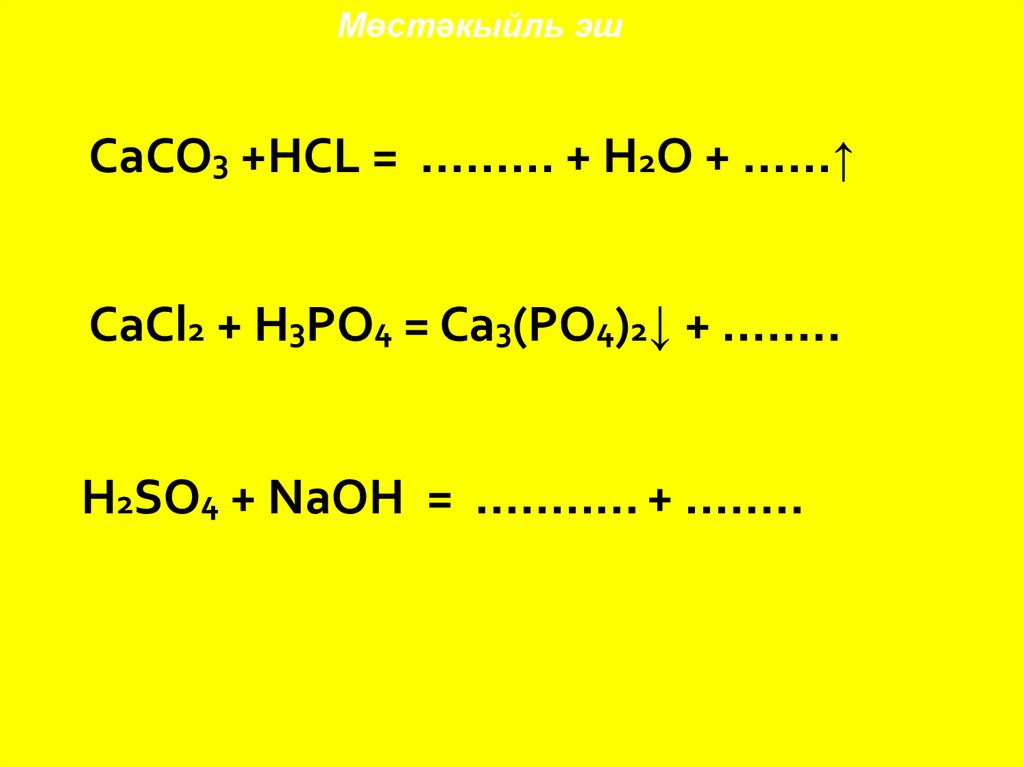 Мөстәкыйль эшСaCO3 +HCL = ......... + H2O + ......↑