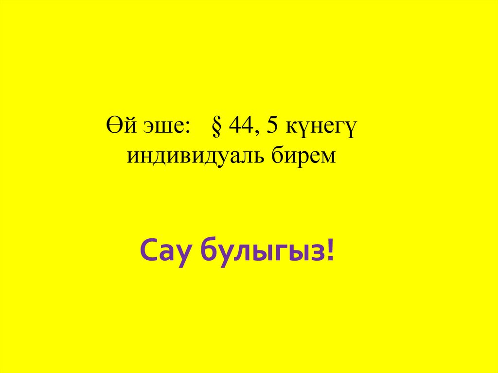 Өй эше: § 44, 5 күнегүиндивидуаль бирем