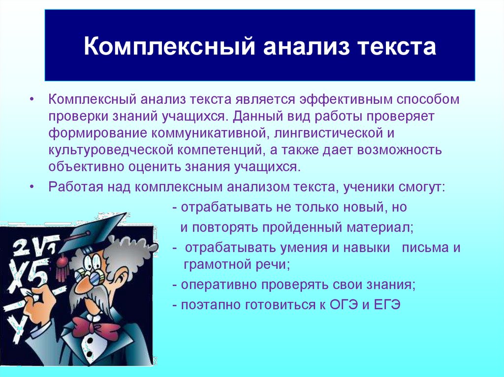 Комплексный анализ текста• Комплексный анализ текста является эффективным способом