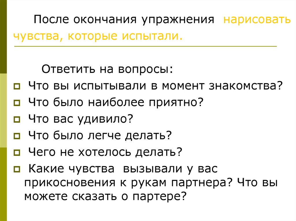 Какие чувства вы испытывали на занятии.Что вам понравилось.