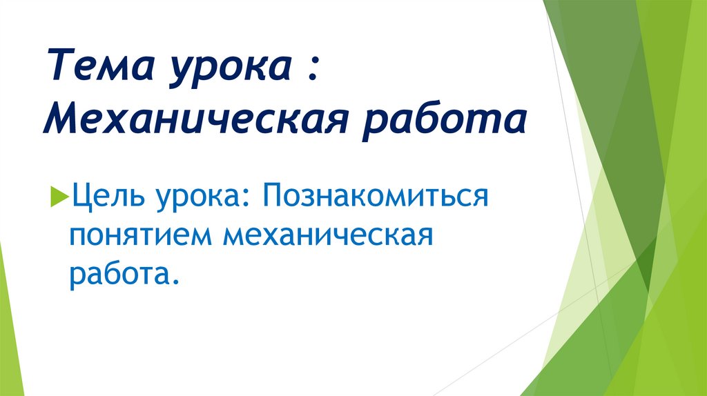 Тема урока :Механическая работа