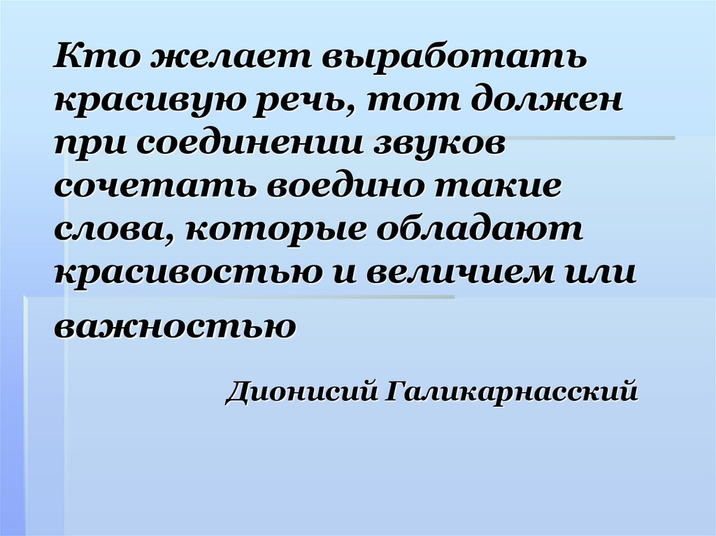 1. Кто желает выработать красивую речь, тот должен при соединении звуков сочетать воедино такие слова, которые обладают