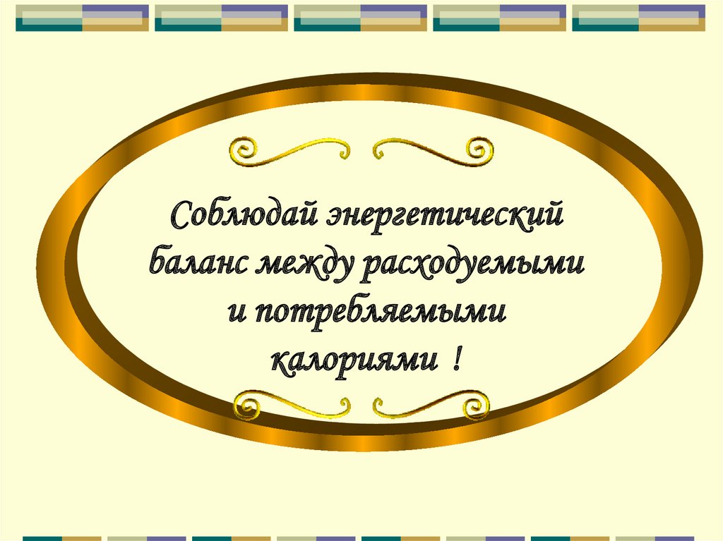 Соблюдай энергетическийбаланс между расходуемыми
