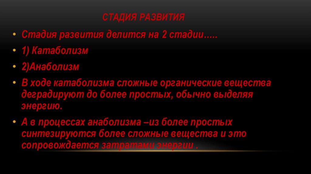 СТАДИЯ РАЗВИТИЯ• Стадия развития делится на 2 стадии…..