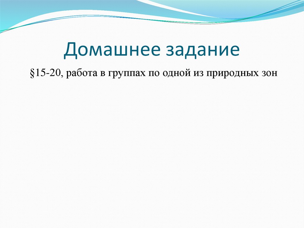 Домашнее задание§15-20, работа в группах по одной из природных зон