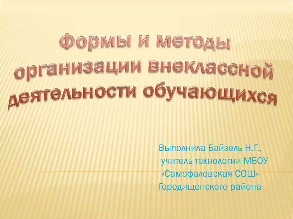 Формы и методы организации внеклассной деятельности обучающихся