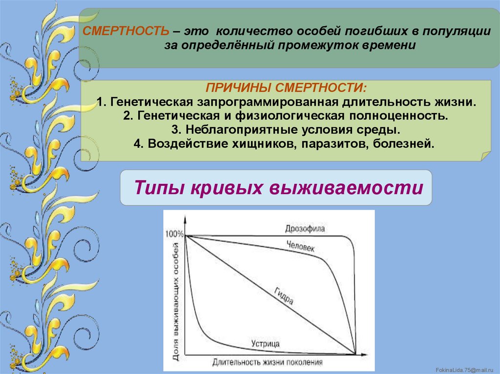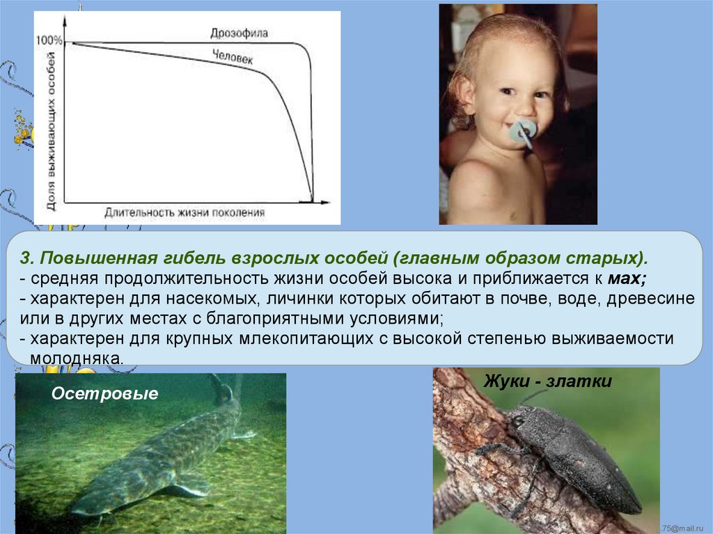 - у животных мах гибель происходит в личиночной фазе или в молодом возрасте.