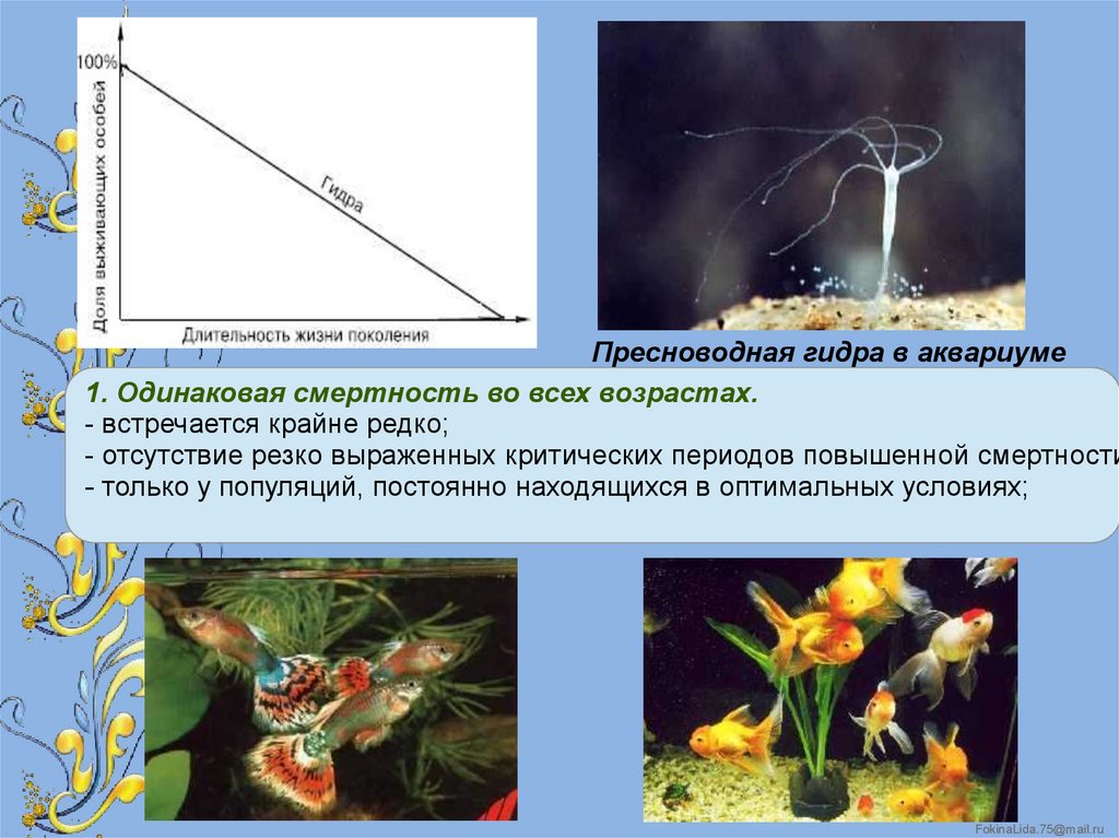 Пресноводная гидра в аквариуме1. Одинаковая смертность во всех возрастах.