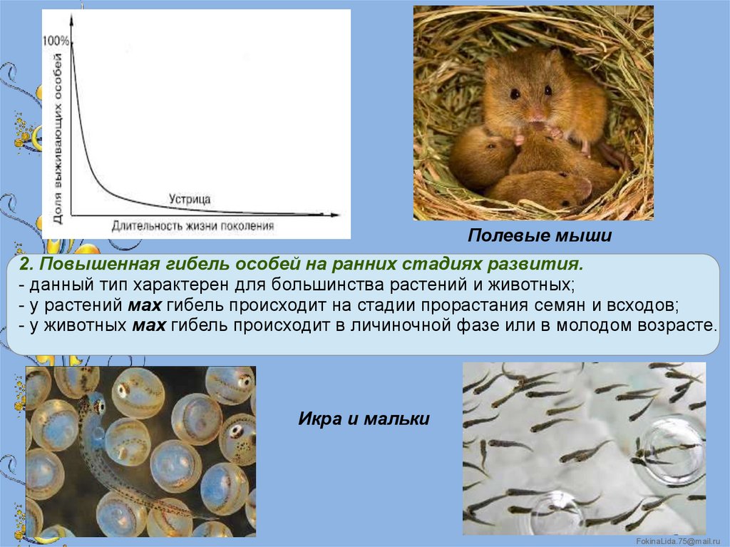 Полевые мыши2. Повышенная гибель особей на ранних стадиях развития.
