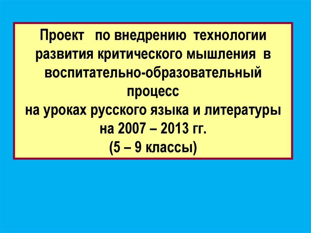 Проект по внедрению технологииразвития критического мышления в