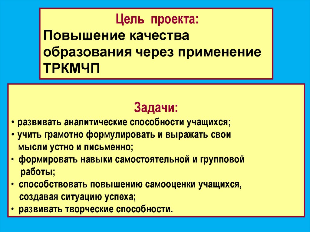 Цель проекта:Повышение качества