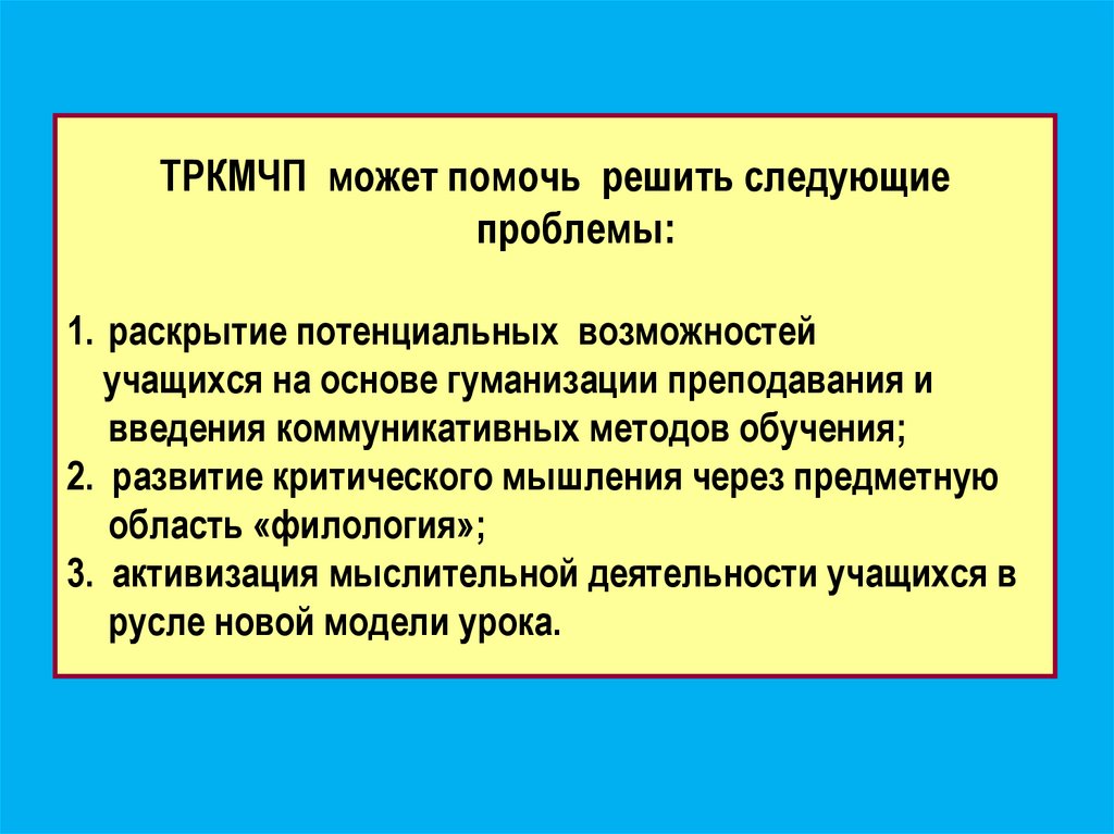 ТРКМЧП может помочь решить следующиепроблемы: